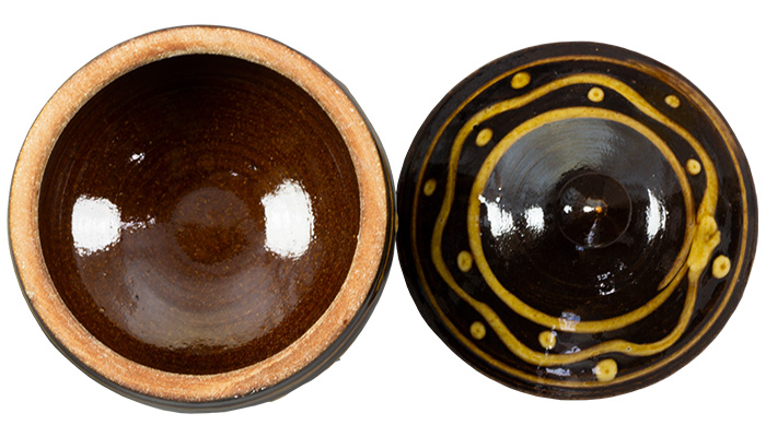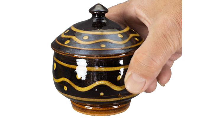 湯町窯 蓋物 8cm 黄釉 濃茶