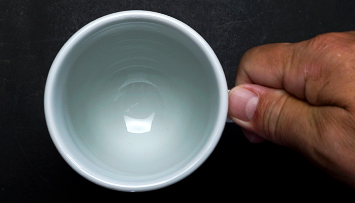 腰の丸いU字型のマグカップ。縦長の湯飲に