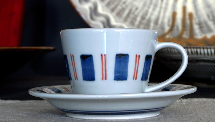 砥部焼 貞山窯 カップ&ソーサー 150cc 十草