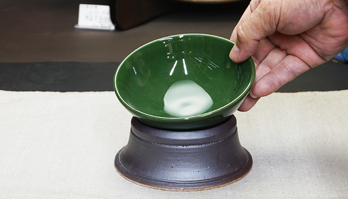 袖師窯 お手入れ簡単 猫 のお 茶碗 12cm 緑