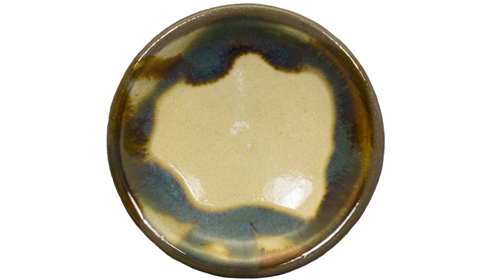 流し掛けした線紋の飴と緑が交錯する、素朴で