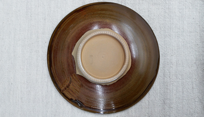 鉋跡を渦巻状に付けた、小鹿田の模様。