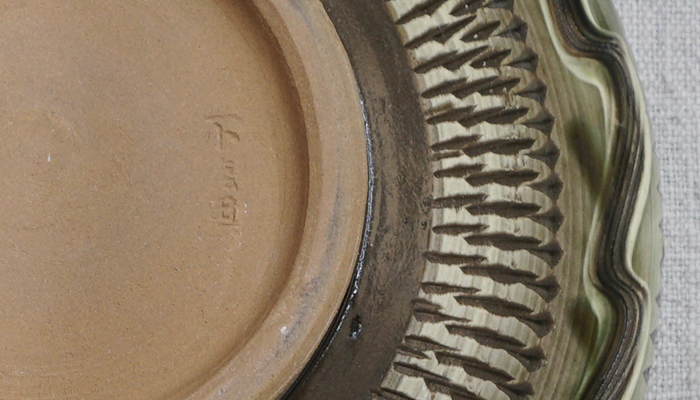 器です。飛び鉋や刷毛目といった独特な技法。