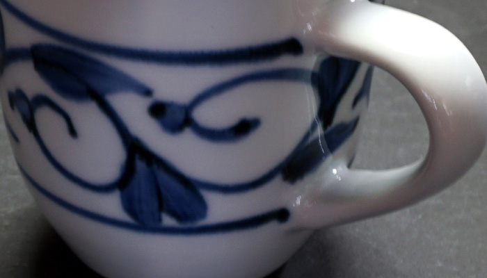 胴には砥部焼独特の濃淡溢れるの唐草模様が